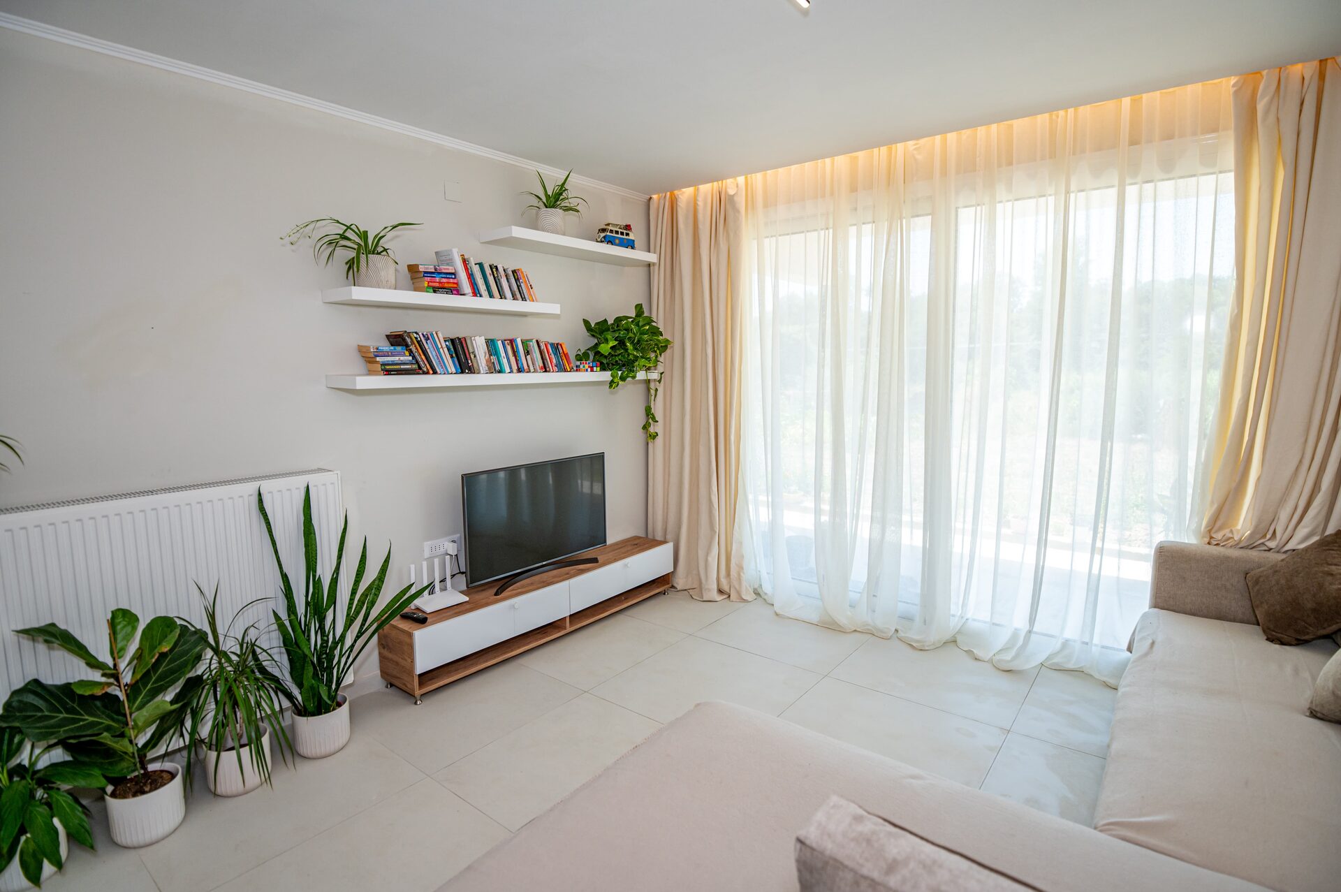 Spacious and bright with comfortable seating, Smart TV, and direct terrace access